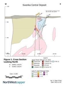 TORONTO, Nov. 06, 2025 (GLOBE NEWSWIRE) -- NorthWest Copper Corp. (“NorthWest” or the “Company”) (TSX-V: NWST) is pleased to announce excellent assay results from the third drill hole of its 2025 expanded diamond drilling program at its 100% owned Kwanika project in British Columbia. Hole K-25-271 successfully intersected multiple copper-gold zones, highlighted by a significant intercept of 27.7 metres grading 1.23 % Cu, 1.53 g/t Au (2.63% copper equivalent1, “CuEq”) within the Central Zone. Results to date, including this hole, support management’s belief that the 2023 Preliminary Economic Assessment2 (the “2023 PEA”) significantly understates the economic potential of the Kwanika project as the 2023 PEA does not reflect the positive impact of targeting higher-grade mineralization within the current mineral resource. Results to date are intersecting these higher-grade zones as expected.